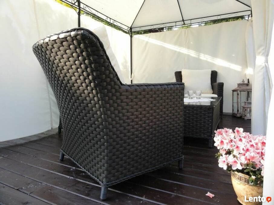 Meble ogrodowe z technorattanu kanapa fotele brązowe